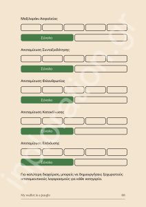 Μέσα από μηνιαία και εβδομαδιαία καταγραφή, φύλλα αποταμίευσης, χρεών, επιθυμιών και επενδύσεων, αποκτάς πλήρη εικόνα των εσόδων και εξόδων σου και μαθαίνεις να διαχειρίζεσαι τα χρήματά σου με μεγαλύτερη επίγνωση. Ξεκίνα σήμερα να βάζεις τάξη στο «χάος» των οικονομικών σου και να δημιουργείς τη δική σου διαδρομή προς την οικονομική ελευθερία.